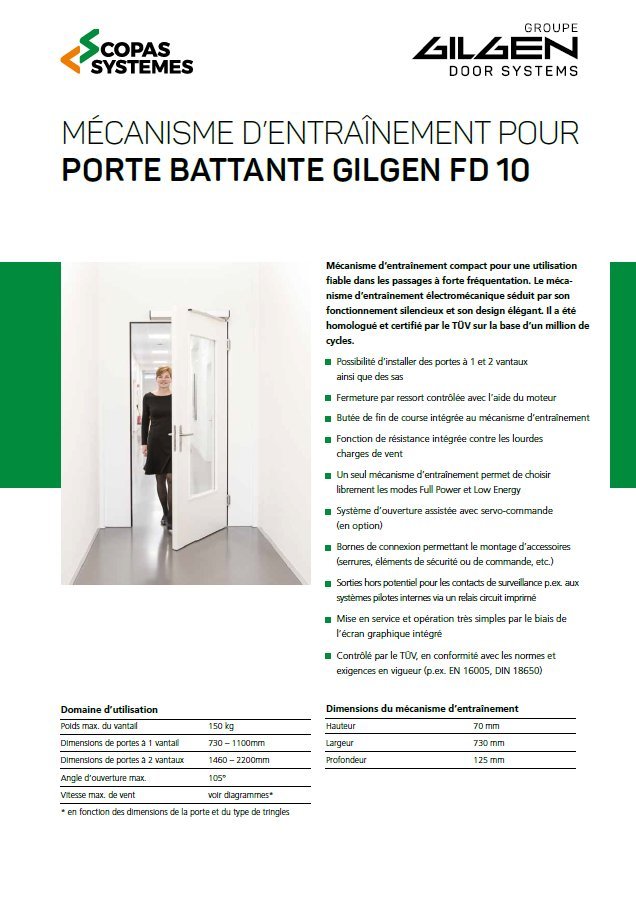 Les entraînements électromécaniques silencieux sont un excellent choix pour une large gamme de portes, des portes intérieures légères aux portes extérieures lourdes. Ils offrent une automatisation fiable des portes au quotidien et peuvent également être utilisés comme fermeture coupe-feu résistante.
