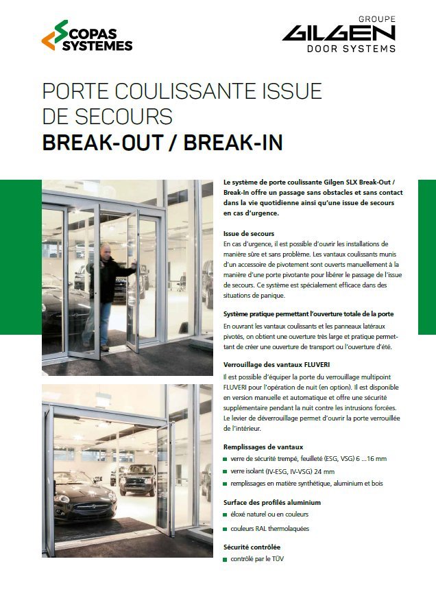 La porte automatique coulissante Gilgen Break-out / Break-in permet des applications multifonctionnelles. En cas d’urgence, les vantaux peuvent être pivotés vers l’extérieur. En repoussant les vantaux coulissants et les panneaux latéraux ainsi pivotés, il est possible d’obtenir une ouverture très large, pratique pour le transport et agréable en été.