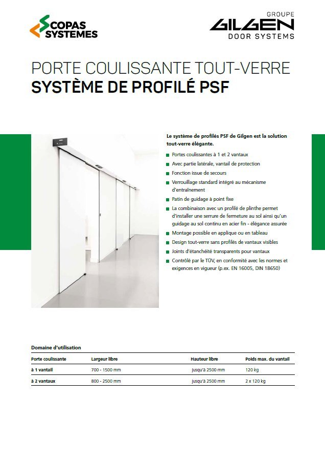 Les issues de secours doivent impérativement être garanties en cas d'urgence - cela vaut également pour les systèmes de portes coulissantes automatiques. COPAS SYSTEMES propose des solutions avec fonction d'issue de secours selon EN 16005 et garantit une sortie sûre du bâtiment en cas d'accident.